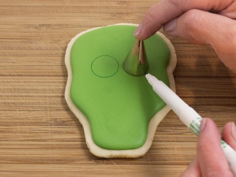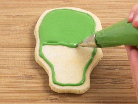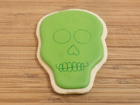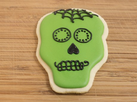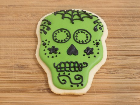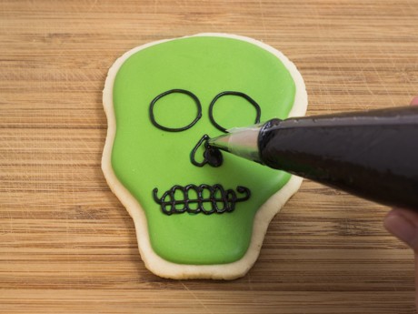 Biscuits «Day of the Dead» Biscuits «Day of the Dead» Même si l’Halloween et le Jour des morts sont sensiblement en même temps, ces deux fêtes sont très différentes. Malgré son nom, le Jour des morts est une fête très colorée et met en valeur les têtes de morts couleur néon, tandis que l’Halloween est principalement représentée par les couleurs noir et orange. Célébrez cette fête mexicaine avec ces biscuits décorés à l’aide de glaçage royal. Une belle façon de vous initier au monde des biscuits décorés. Categories: biscuits au sucre glaçage royal collation matinale Halloween Sucre Granulé icing sugar RENDEMENT 24 biscuits TEMPS DE PRÉPARATION 20 minutes TEMPS DE CUISSON 120 minutes INGRÉDIENTS 1 recette de biscuits au sucre roulée, découpée, cuite et tempérée. 1 recette de glaçage royal, divisée selon le nombre de couleurs désirées; une des couleurs devrait être noire et de consistance moyenne. Méthode Préparation 1. Remplir une poche à pâtisserie munie d'une douille no.3 de glaçage royal de consistance liquide de la couleur de votre choix. 2. Tracer le contour du biscuit en gardant un espace d’environ ¼ po. Presser sur la poche et guidez vous à l’aide de votre autre main. 3. Remplir ensuite la portion entourée pour recouvrir complètement le biscuit. Taper le biscuit délicatement sur la table ou le comptoir pour égaliser la surface et laisser sécher de 8 à 12 heures. Pour une surface plus lisse, faire sécher devant un ventilateur. 4. Remplir une autre poche à pâtisserie munie d'une douille no.1 de glaçage royal noir de consistance moyenne. 5. Déterminer où vous voulez positionner les yeux, le nez et la bouche. Vous pouvez tracer directement ou vous pouvez vous faire des guides à l’aide de marqueurs comestibles ou d’une pointe très fine. Tracer les traits à l’aide du glaçage noir. Laisser aller votre imagination pour les petits détails. Voici quelques suggestions: toiles d’araignées, cœurs, points, fleurs, etc. 6. Laisser sécher de 2 à 4 heures. Conseils du chef Assurez-vous que vos biscuits sont uniformes lorsque vous roulez la pâte pour éviter que le glaçage royal ne coule sur les côtés. Lorsque vous n’utilisez pas le glaçage royal, couvrir le bol ou la douille d’un linge humide. Gardez un espace entre le côté du biscuit et le glaçage royal pour pouvoir le manipuler plus facilement. Ajouter de la poudre de cacao tamisée pour obtenir un glaçage royal noir sans trop ajouter de colorant en gel.