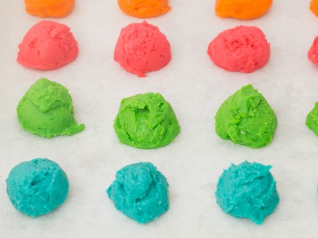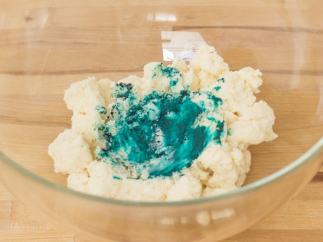 5. Diviser la pâte selon le nombre de couleurs désirées, ajouter le colorant alimentaire et mélanger. Réfrigérer pendant une heure.