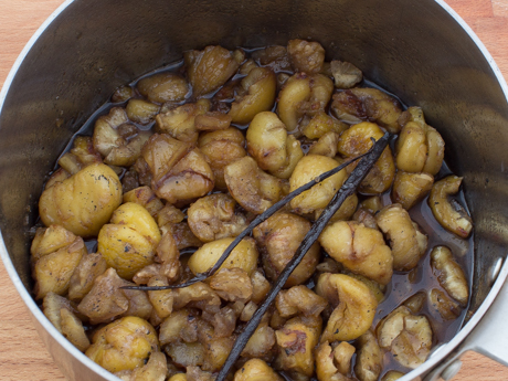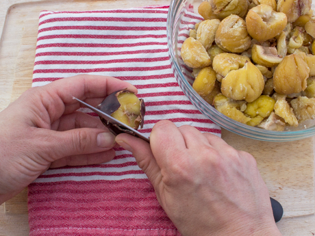 Biscuits thumbprint aux marrons Biscuits thumbprint aux marrons Le marron, aussi appelé châtaigne, possède une saveur légèrement sucrée et délicate. Lorsque réduit en purée, c’est la garniture idéale pour un dessert. Essayez dès ce soir ces magnifiques biscuits thumbprint aux marrons ou offrez-les en cadeau si le coeur vous en dit! Categories: Biscuits, brownies et barres Noël et réveillon Cassonade Foncée Sucre à Glacer RENDEMENT 36 biscuits TEMPS DE PRÉPARATION 45 minutes TEMPS DE CUISSON 14 minutes INGRÉDIENTS Ingrédients pour la garniture aux marrons 1 ½ tasse (270 g) de marrons entiers (environ 20) ¾ tasse (180 ml) d’eau, et plus au besoin ⅓ tasse (72 g) de Cassonade Dorée Redpath®, tassée 1 gousse de vanille entière, coupée en deux et les grains retirés ou 1 c. à thé (5 ml) d’extrait de vanille 2 c. à table (30 ml) de rhum foncé ¼ c. à thé (1 g) de sel Ingrédients pour la pâte à biscuits 2 tasses (250 g) de farine tout usage 1 tasse (128 g) de fécule de maïs 1 c. à thé (6 g) de sel ½ c. à thé (2 g) de gingembre moulu 1 ¼ tasse (284 g) de beurre non salé, ramolli ⅔ tasse (80 g) de Sucre à Glacer Redpath® 2 c. à thé (10 ml) d’extrait de vanille Ingrédient pour décorer ½ tasse (85 g) de brisures de chocolat noir Méthode Préparation de la garniture aux marrons Déposer un marron le côté plat vers le haut par-dessus un linge à vaisselle plié. Tenir fermement la base et faire un “X” à l’aide d’un couteau d’office. Répéter avec le reste des marrons. Mettre les marrons dans une casserole et couvrir de 1 pouce (2.5 centimètres) d’eau. Porter à ébullition, réduire à feu moyen-bas et laisser mijoter pendant sept minutes. Fermer le rond et laisser les marrons dans l’eau chaude. Retirer quelques marrons à la fois à l’aide d’une cuillère à trous puis déposer sur le linge à vaisselle. Retirer la peau et la membrane à l’aide du même couteau. Vous pouvez aussi utiliser le linge à vaisselle pour retirer les membranes en le frottant sur les marrons. Si les membranes ne s’enlèvent pas facilement, remettre les marrons dans l’eau chaude pendant quelques minutes. Mettre les marrons pelés dans une casserole moyenne avec 1 tasse (180 millilitres) d’eau, la Cassonade Dorée Redpath®, la gousse et les grains de vanille. Faire mijoter pendant 20 minutes à feu moyen-bas. Laisser tempérer pendant 10 minutes puis retirer la gousse de vanille. Transférer la préparation dans le bol d’un robot culinaire muni de la lame de métal. Ajouter le rhum, l’extrait de vanille (si vous n’avez pas utilisé une gousse de vanille) et le sel. Réduire en purée lisse en grattant les parois du bol. Si la préparation est trop épaisse, ajouter de l’eau au besoin. Transférer dans une poche à pâtisserie muni d’une douille ronde de ½ pouce (1 centimètre) ou un gros sac à congélation en coupant un coin. Préparation de la pâte à biscuits Préchauffer le four à 350°F (180°C). Couvrir deux plaques à biscuits de papier parchemin. Fouetter la farine, la fécule de maïs, le sel et le gingembre. Réserver. Crémer dans un bol moyen le beurre et le Sucre à Glacer Redpath® pendant trois minutes à l’aide d’un mélangeur électrique à main à vitesse moyenne. Ajouter la vanille et mélanger. Réduire à basse vitesse et ajouter les ingrédients secs. Mélanger à vitesse moyenne pendant quatre minutes. Former des boules de 1 ½ pouce (3.75 centimètres) de diamètre et déposer sur la plaque à biscuits à une distance de 2 pouces (5 centimètres) les unes des autres. Écraser légèrement la boule et former un creux de ½ pouce (1 centimètre) à l’aide de votre pouce ou du manche d’une cuillère de bois. Cuire de 12 à 14 minutes ou jusqu’à ce que la base soit dorée en prenant soin de tourner la plaque à la mi-cuisson. Transférer sur une grille et laisser tempérer complètement. Pour assembler Garnir d’environ 1 cuillère à table (8 grammes) de la garniture de marrons dans le creux du biscuits. Égaliser à l’aide d’un doigt mouillé. Faire fondre le chocolat au micro-ondes dans un petit bol par intervalles de 10 secondes en remuant à chaque fois. Verser en filet par-dessus les biscuits à l’aide d’une cuillère ou d’un cône en papier parchemin. Conserver dans un plat hermétique jusqu’à une semaine. Conseils du chef Vous pouvez conserver la pâte à biscuits non cuite au congélateur jusqu’à un mois. Bien envelopper d’une pellicule de plastique et mettre dans un sac à congélation. Les biscuits cuits sans la garniture se conservent au congélateur jusqu’à un mois dans un contenant hermétique. Pour économiser du temps, vous pouvez utiliser des marrons prêt à manger.