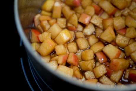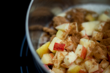 Brie fondant avec pommes chaudes et noix confites