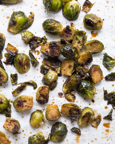 Étendre les choux de Bruxelles sur la plaque et cuire au four pendant cinq minutes. À la sortie du four, les choux devraient être tendres et croustillants à la fois. Servir immédiatement.