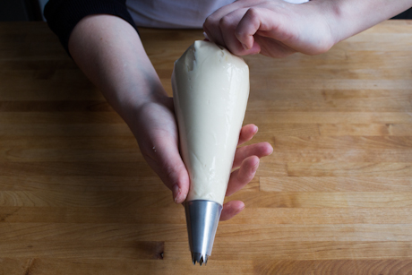 Mélanger en alternance le sucre à glacer et le beurre, en ajoutant le reste de la crème irlandaise, jusqu’à ce que vous obtenez un glaçage parfait pour pouvoir être mis dans une poche à pâtisserie.