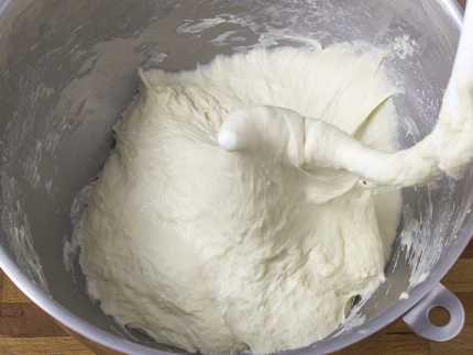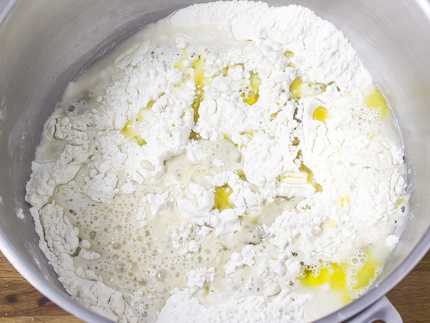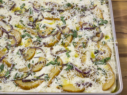 Focaccia aux poires et parmesan Focaccia aux poires et parmesan Dans la cuisine test Redpath, on aime bien transformer les classiques! Pour cette recette, nous avons transformé la focaccia en y ajoutant des poires et du parmesan. En caramélisant les poires avec de la Cassonade Dorée Redpath®, nous avons créé l’équilibre parfait entre le sucré et le salé. Le plat idéal à partager - delizioso! Categories: Pains, muffins et scones collation matinale Brunchs Pâques Noël et réveillon Sucre Granulé RENDEMENT 18 morceaux TEMPS DE PRÉPARATION 3 heures 5 minutes TEMPS DE CUISSON 30 minutes INGRÉDIENTS Pour la pâte: 2 tasses (480 ml) d’eau à 110°F (43°C), divisée 1 enveloppe (8 g) de levure sèche active 2 c. à thé (8 g) de Sucre Granulé Redpath® 5 ½ tasses (660 g) de farine à pain 1 ½ c. à thé (9 g) de sel ¼ tasse (60 ml) d’huile d’olive et un peu plus pour graisser, divisée Pour la garniture ¼ tasse (60 ml) d’huile d’olive, divisée ½ (100 g ) oignon rouge, tranché finement 400 g (2 moyennes) de poires Bosc, le coeur retiré et coupée en tranches de ⅜ pouce (1 cm) ¼ tasse (54 g) de Cassonade Dorée Redpath®, tassée 1 tasse (60 g) de fromage parmesan râpé 1 c. à table (5 g) de romarin frais haché 1 c. à table (3 g) de sauge fraîche hachée ½ c. à thé (2 g) de poivre noir du moulin ½ c. à thé (2 g) de gros sel de mer Cassonade Dorée Méthode Pour la pâte: Fouetter ¼ tasse (60 millilitres) d’eau, la levure et le Sucre Granulé Redpath® dans un petit bol. Laisser reposer pendant 10 minutes jusqu’à ce que la préparation devienne mousseuse. Mettre la farine et le sel dans le bol d’un batteur sur socle muni du fouet plat. Mélanger à basse vitesse pendant une minute. Ajouter l’eau restante, la préparation de levure et 1 cuillère à table (15 millilitres) d’huile d’olive. Mélanger à basse vitesse jusqu’à ce que la pâte forme un tout. Changer pour le crochet et continuer à mélanger à vitesse moyenne-basse pendant sept minutes ou jusqu’à ce que la pâte soit lisse et élastique. Graisser un gros bol d’huile d’olive. Transférer la boule de pâte dans le bol et bien enrober d’huile. Couvrir d’une pellicule de plastique et laisser doubler de volume, environ 75 minutes. Préchauffer le four à 400°F (200°C). Graisser une plaque à biscuits de 18 x 13 pouces (46 x 33 centimètres) avec 3 cuillères à tables (45 millilitres) d’huile d’olive. Appuyer légèrement sur la pâte afin de faire sortir les gaz et transférer sur la plaque. Étendre la pâte uniformément sur la plaque en insistant dans les coins. Couvrir à nouveau et laisser doubler de volume, environ une heure. Pour la garniture: Faire chauffer 1 cuillère à table (15 millilitres) d’huile d’olive dans une grande poêle. Ajouter les oignons et cuire jusqu’à ce qu’ils soient dorés. Transférer dans un bol et réserver. Ajouter les poires tranchées dans la même poêle et cuire d’un côté pendant deux minutes ou jusqu’à ce qu’elles soient dorées. Tourner de côté et saupoudrer avec la Cassonade Dorée Redpath®. Poursuivre la cuisson en tournant les poires pendant trois minutes ou jusqu’à ce que la cassonade soit dissoute. Retirer du feu et réserver. Pour assembler le focaccia aux poires et parmesan: Faire des crevasses sur toute la surface de la pâte à l’aide de vos doigts. Verser 3 cuillères à soupe (45 millilitres) d‘huile d’olive par-dessus. Garnir uniformément des poires, des oignons, du romarin, de la sauge et du fromage. Saupoudrer de poivre et sel. Cuire de 25 à 30 minutes ou jusqu’à ce que la pâte soit bien dorée. Retirer du four et laisser tempérer sur la plaque pendant 10 minutes. Transférer la foccacia sur une planche et couper en carrés de 3 x 4 pouces (7.5 x 10 centimètre). Il est préférable de servir la foccacia le jour même. Conseils du chef Assurez-vous que vos poires soient bien fermes. Des poires trop mûres ne supporteront pas la double cuisson.