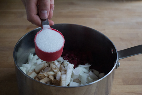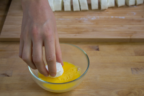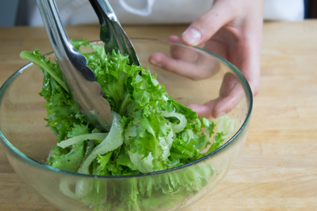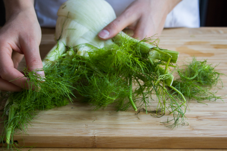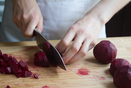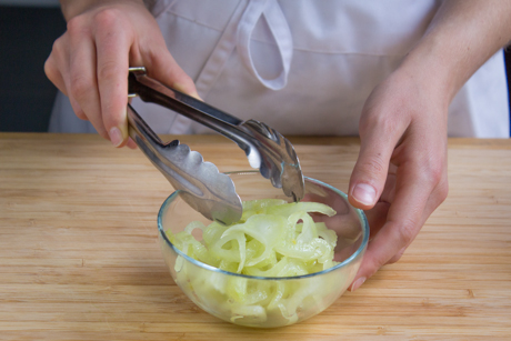 Fromage de chèvre frit avec sa relish de betterave, son fenouil poché, ses endives frisées et son sucre aromatisé, façon Chef Christophe