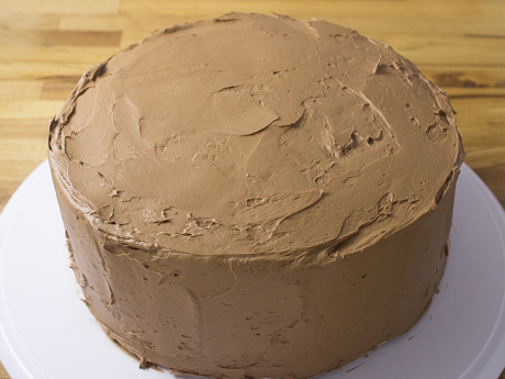 Retirer du réfrigérateur et couvrir tout le gâteau de la crème au beurre restante.