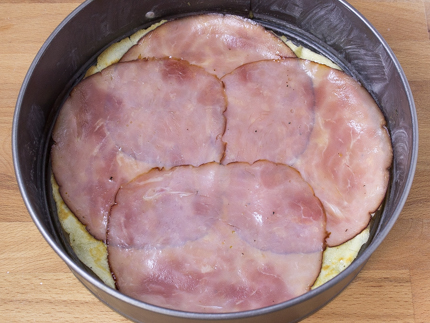 Étendre quatre tranches de jambon et badigeonner de la laque.