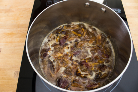 2. Dans une casserole, portez l’eau et les dattes à ébullition. Laisser mijoter, en remuant souvent, pendant environ 3 minutes, jusqu’à ce que l’eau soit absorbée et que les dattes se transforment en un mélange pulpeux. Mettre de côté.