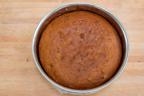 6. Verser la pâte dans le moule préparé et cuire au four pendant 40 à 50 minutes, ou jusqu’à ce qu’un cure-dent inséré au centre du gâteau en ressorte propre.
