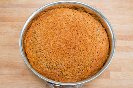 2. Garnir le dessus du gâteau pendant qu’il est encore chaud, puis placez sous le gril jusqu’à ce que la garniture prenne une couleur brune dorée. Assurez-vous de regarder le gâteau de près pendant cette étape afin d’éviter la combustion de la noix de coco, car cela ne prend que quelques minutes. Une fois la garniture grillée, laissez le gâteau refroidir dans le moule pendant au moins 10 minutes avant de retirer. Transférez sur un présentoir pour gâteaux ou sur une assiette et servir avec la sauce.