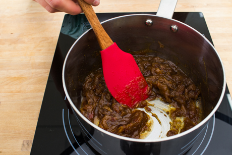 1. Pendant ce temps, dans une casserole, portez tous les ingrédients à ébullition, en remuant constamment. Laissez mijoter doucement pendant environ 2 minutes.