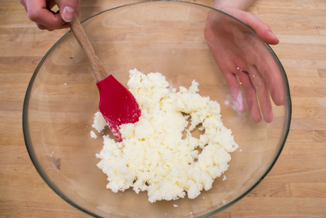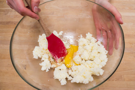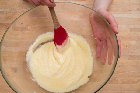 4. Dans un autre bol, crémer le beurre, le sucre et la vanille au batteur électrique. Ajoutez l’oeuf et battre jusqu’à consistance lisse.
