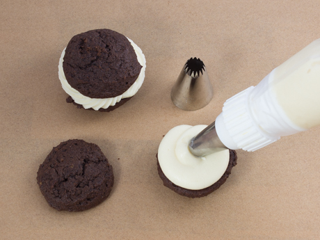 Mini whoopie pies au chocolat Mini whoopie pies au chocolat En combien de bouchées allez-vous dévorer ces mini whoopie pies au chocolat? Ce classique de la cuisine américaine est à la fois considéré comme un biscuit, une tarte ou un gâteau. Notre version mini est parfaite pour une célébration entre amis ou en famille. Categories: Biscuits, brownies et barres Desserts collation matinale Noël et réveillon anniversaire RENDEMENT 18 whoopie pies TEMPS DE PRÉPARATION 10 minutes TEMPS DE CUISSON 10 à 15 minutes INGRÉDIENTS Pour les whoopie pies 2 ¼ tasses (281 g) de farine tout usage ½ tasse (50 g) de poudre de cacao 2 c. à thé (3 g) d’expresso instantané en poudre 1 ¼ c. à thé (7 g) de bicarbonate de soude ½ c. à thé (2 g) de poudre à pâte ½ c. à thé (3 g) de sel ¼ c. à thé (1 g) de cannelle moulue ⅔ tasse (160 ml) de crème sure 1 oeuf de calibre gros 1 c. à table (15 ml) d’extrait de vanille pur ½ tasse (114 g) de beurre non salé 1 tasse (217 g) de Cassonade Foncée Redpath®, bien tassée Pour la garniture 1 tasse (227 g) de fromage à la crème ¼ tasse (57 g) de beurre non salé 1 c. à table (15 ml) de crème sure 1 ½ c. à thé (7 ml) d’extrait de vanille pur ½ c. à thé (3 g) de sel 3 ⅔ tasses (440 g) de Sucre à Glacer Redpath® Méthode Pour les whoopie pies Préchauffer le four à 350℉ (175℃). Couvrir une plaque à biscuits de papier parchemin. Fouetter la farine, la poudre de cacao, l’expresso instantané, le bicarbonate de soude, la poudre à pâte, le sel et la cannelle dans un bol moyen. Fouetter la crème sure, l’oeuf et la vanille dans une petit bol ou une tasse à mesurer. Réserver. Dans le bol d’un batteur sur socle muni du fouet plat, crémer le beurre et la Cassonade Foncée Redpath® à vitesse moyenne-élevée jusqu’à ce que la préparation palisse. Ajouter le tiers des ingrédients secs et mélanger en laissant des stries. Ajouter la moitié de la préparation de crème sure et tout juste combiner. Répéter avec le reste en grattant les parois du bol. Former des boules uniformes à l’aide d’une petite cuillère à crème glacée (1 ¼ pouce / 3 centimètres) et déposer sur la plaque. Réfrigérer pendant 10 minutes. Reformer les boule au besoin avant la cuisson. Cuire de 10 à 15 minutes ou jusqu’à ce qu’un cure-dent inséré au centre en ressorte propre. Laisser tempérer sur la plaque pendant cinq minutes avant de transférer délicatement. Pour la garniture Dans le bol d’un batteur sur socle muni du fouet plat, détendre le fromage à la crème à vitesse moyenne. Gratter les parois du bol et ajouter le beurre et mélanger jusqu’à consistance lisse. Ajouter la crème sure, l’extrait de vanille et le sel et bien incorporer. Ajouter en tamisant le Sucre à Glacer Redpath® à vitesse moyenne en quatre additions. Bien mélanger entre chaque addition sans trop mélanger. Munir une poche à pâtisserie d’une douille ronde ou étoilée et remplir de la garniture. Réserver. Si la garniture est trop molle, mettre au réfrigérateur. Pour assembler Garnir d’environ une cuillère à table de la garniture du côté plat de la moitié des whoopie et déposer un autre whoopie par-dessus en pressant légèrement. Réfrigérer cinq minutes une fois terminé afin que la garniture fige. Conserver au réfrigérateur dans un contenant hermétique jusqu’à quatre jours. Conseils du chef Vous pouvez remplacer l’expresso par du café instantané. Tous les ingrédients doivent être à température pièce afin de bien réussir la recette. À servir lors d’une fête d’adulte ou d’enfants comme les whoopie pies se mangent en deux bouchées.