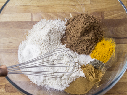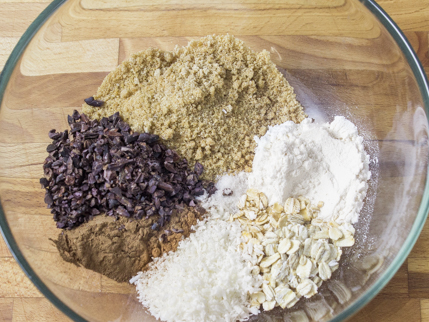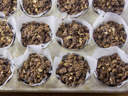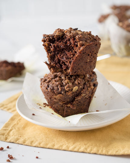 Muffins à la noix de coco, curcuma et streusel au cacao