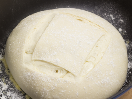 Transférer délicatement la pâte sur une surface farinée en prenant soin qu'elle ne dégonfle pas trop. Former un miche bien ronde.