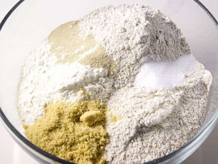 Fouetter dans un grand bol les farines, la Cassonade Dorée Redpath®, le sel et la levure.