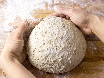 Tourner la pâte de façon à ce que le dessus soit en-dessous et former une boule en tirant légèrement la pâte vers le dessous.