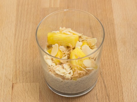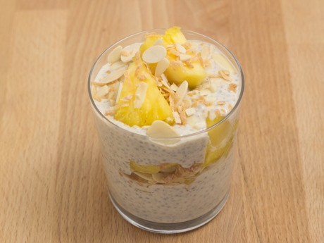 Parfait à la noix coco, ananas et graines de chia Parfait à la noix coco, ananas et graines de chia On adore la versatilité de cette recette. Est-ce un déjeuner, une collation ou un dessert? Difficile de choisir. Une chose est certaine, ce parfait à la noix coco, ananas et graines de chia est comment dire, parfait! Categories: parfaits noix de coco Déjeuners déjeuner froid Été Printemps Cassonade de style Demerara RENDEMENT 4 portions TEMPS DE PRÉPARATION 35 minutes ou toute la nuit TEMPS DE CUISSON INGRÉDIENTS 2 tasses (520 g) de yogourt nature ou de yogourt grec 2 tasses (480 ml) de lait de noix de coco ¾ tasse (132 g) de graines de chia biologiques ⅓ tasse (67 g) de Cassonade Demerara Redpath®, légèrement tassée 2 c. à thé (10 ml) d'extrait de vanille ½ c. à thé (3 g) de cannelle moulue ½ ananas moyen (365 g), le coeur retiréet coupéen morceaux 1 tasse (88 g) de noix de coco non sucrée (râpée ou en flocons) grillée 1 tasse (97 g) d'amandes effilées grillées Cassonade de style Demerara Méthode Pour assembler 1. Mélanger le yogourt, le lait de noix de coco, les graines de chia, la Cassonade Demerara Redpath® et l’extrait de vanille dans un grand bol. Saupoudrer la cannelle moulue et remuer. Couvrir d’une pellicule de plastique et laisser reposer 30 minutes à température pièce. 2. Mettre le bol au réfrigérateur pendant au moins quatre heures ou toute la nuit. Remuer une dernière fois avant de transférer dans les verres ou plats de service. 3. Parer l’ananas pendant ce temps. Couper les deux extrémités et retirer la pelure en plaçant l’ananas debout. Couper en deux dans le sens de la longueur. Garder une moitié et réfrigérer l’autre moitié. Couper en deux à nouveau, retirer le coeur et couper en morceaux. Réserver. 4. Préchauffer le four à 325℉ (163℃). Couvrir deux plaques à biscuits de papier parchemin et y étendre la noix de coco râpée et les amandes effilées séparément. Cuire de sept à dix minutes en prenant soin de les surveiller, car elles brunissent rapidement. 1. Déposer environ ½ tasse (120 ml) de yogourt dans le fond de chaque verre, ajouter des morceaux d’ananas et saupoudrer d’environ 1 c. à table de chacune des noix grillées. 2. Ajouter une autre ½ tasse (120 ml) de yogourt par-dessus les morceaux d'ananas et de noix grillées. Terminer avec les morceaux d'ananas et les noix grillées. 3. Servir immédiatement.