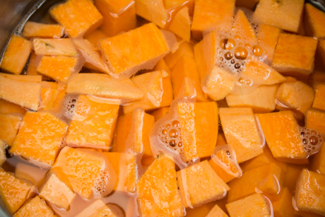 Patates douces avec pacanes caramélisées Patates douces avec pacanes caramélisées Cette recette nous a été gentiment offerte par Lionel John, chef au restaurant Spice Shack de Scarborough, en Ontario. Il l’a reçu de sa grand-mère, qui réservait cette recette de patates douces pour les occasions spéciales. Si jamais vous passez par Scarborough, ne manquez pas de visiter ce restaurant pour déguster de délicieux plats aux saveurs d’Asie du Sud. Categories: Soupes et accompagnements Accompagnements INGRÉDIENTS Pour les patates douces: 2 grosses patates douces 1/2 tasse (113 g) de beurre non salé, fondu 2 c.à soupe (28 g) de Cassonade Dorée Redpath 1/4 c. à thé(1 g) de cannelle moulue 1/4 c. à thé(1 g) de muscade moulue 1/4 c. à thé(1 g) de tout épices Pour les pacanes confites: 1/2 tasse (48 g) de moitiés de noix de pécan 1/3 tasse (63 g) de Cassonade Dorée Redpath Cassonade Dorée Méthode Pour les patates douces: 1. Pelez les patates douces et les couper en petits cubes. Ajoutez à une grande casserole remplie d’eau, couvrir et porter à ébullition à feu vif. Découvrir et poursuivre la cuisson à feu moyen-vif jusqu’à ce que les patates douces soient tendres et facilement percées par une fourchette. 2. Égoutter les patates douces cuites, puis les réduire en purée à l’aide d’un pilon ou d’une fourchette. Ajoutez le beurre fondu, le sucre et les épices et bien mélanger. Transférez les pommes de terre dans un plat de cuisson de 9×13 ou dans une grande poêle en fonte. Mettre de côté. Pour les pacanes confites: 1. Ajoutez les moitiés de pacanes et la cassonade dans une poêle et faire chauffer à feu moyen-élevé. Une fois que le sucre commence à fondre, mélangez les noix et le sucre jusqu’à ce que le sucre soit complètement fondu et enrobe les noix. 2. Dès que les noix sont caramélisées, transférez immédiatement sur une planche à découper. Une fois assez refroidies pour pouvoir être manipulées, hachez grossièrement les noix, puis saupoudrer sur les pommes de terre douces. 3. Cuire les patates douces au four à 350 ° F (175 ° C) pendant 10 à 15 minutes. Servir immédiatement.