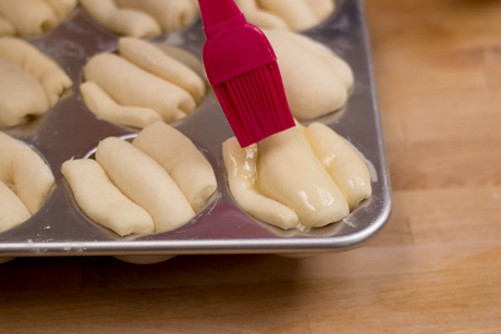14. Brossez chaque morceau avec du beurre fondu et créez une forme de "W".'Éli"