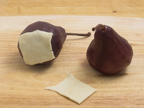 2. Coller le carré à la base de chaque poire de façon à couvrir le trou de la cavité.