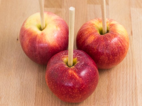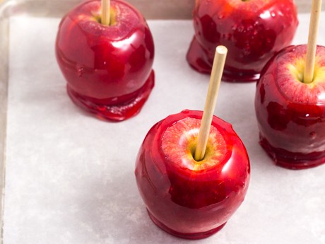 *Pour une pomme à la tire à saveur de cannelle, ajouter ¼ c. à thé d’huile de cannelle ou faire fondre ⅓ tasse de bonbons en cœur à la cannelle à l’étape 3.
