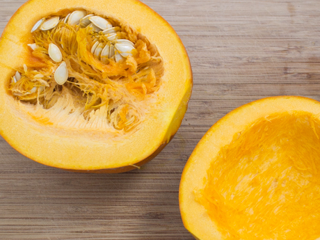 Nettoyer la citrouille, piquer à l’aide d’une fourchette et cuire au four pendant 30 minutes.