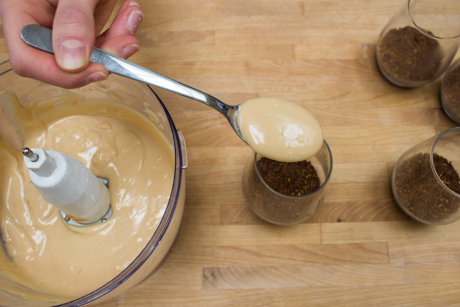 Poudings végétaliens en verrines au beurre d'arachide Poudings végétaliens en verrines au beurre d'arachide Chez Redpath, nous sommes d’avis que le beurre d’arachide est toujours un ajout gagnant à nos recettes. Pour les végétaliens et pour ceux qui font attention à leur santé mais qui aiment tout de même s’octroyer une petite douceur sucrée à l’occasion, vous allez adorer cette recette. Qui aurait cru qu’avait son goût si crémeux et onctueux, ce dessert décadent contient du tofu ? Categories: pudding Poudings, mousses et crèmes beurre d'arachide collation matinale Desserts Végétalien icing sugar INGRÉDIENTS Pour la croûte: 3/4 de tasse (65 g) de miettes de biscuits Graham 2 c. à soupe (28 g) de Cassonade Foncée ou Dorée Redpath 1/4 de tasse (78 g) de pépites de chocolat, fondues* 1 c. à soupe (15 ml) d'huile de noix de coco, fondue Pour la garniture au beurre d'arachides crémeux: 1 300 g de tofu soyeux, haché grossièrement 1/2 tasse (130 g) de beurre d'arachide crémeux 1/2 tasse (60 g) de Sucre à Glacer Redpath 1 c. à thé (5 ml) d'extrait de vanille une pincée de sel Pour la garniture au chocolat: 1/4 tasse de pépites de chocolat (78 g) * 1 c. à soupe ( 15 ml) d'huile de noix de coco Sucre à Glacer Méthode Poudings végétaliens en verrines au beurre d’arachide Préparation: Pour la croûte: 1. Mélanger les miettes de biscuits graham et la cassonade jusqu’à consistance homogène. Image Image 2. Incorporer l’huile de noix de coco fondue, puis le chocolat fondu et mélanger jusqu’à ce que le tout soit uniformément réparti. 3. Diviser le mélange entre les 4 ou 5 verrines, bocaux ou verres à parfait, puis mettre de côté. Pour la garniture au beurre d’arachides: 1. Placez tous les ingrédients de la garniture dans un mélangeur ou un robot culinaire jusqu’à consistance lisse, en raclant les côtés, au besoin. Image Image 2. Verser la garniture dans chaque récipient de service sur la croûte de biscuits graham, en divisant également entre eux. Lissez le dessus avec une cuillère. 3. Placez les pots dans le congélateur, découverts, pendant environ 30 minutes, ou jusqu’à ce que les dessus soient fermes. Pour la garniture au chocolat: 1. Lorsque vos desserts ont bien prits, faire fondre les brisures de chocolat et l’huile de noix de coco dans un bol allant au micro-ondes, au four micro-ondes, en remuant après 20 secondes de chauffage jusqu’à consistance lisse. Si vous préférez, vous pouvez aussi faire fondre la garniture dans une casserole à feu doux. 2. Retirez les puddings du congélateur et versez délicatement environ 1 cuillère à soupe de garniture sur le dessus de chacun d’eux. Après avoir versé le mélange de chocolat fondu, brasser rapidement le récipient afin que la surface soit recouverte de garniture. Refroidir les puddings au congélateur pendant 5 minutes ou jusqu’à ce que les dessus aient durcis. Conserver au réfrigérateur ou au congélateur, ou encore servir immédiatement. Image Image Conseils du chef * Assurez-vous de bien vérifier vos pépites de chocolat pour s’assurer qu’elles sont végétaliennes et ne contiennent pas de produits laitiers.