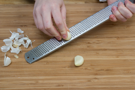 *Au lieu d’hacher l’ail avec un couteau, nous vous conseillons de la râper à l’aide d’une microplane pour une texture extra-fine.