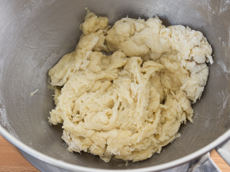 Faire fondre les deux cuillères à table (28 grammes) de beurre restantes et en badigeonner la pâte.