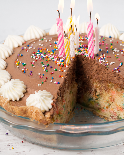 Tarte gâteau d'anniversaire Tarte gâteau d'anniversaire Rien de mieux qu’un gâteau pour célébrer un anniversaire, mais que faire si le ou la fêtée préfère une tarte? Pas de souci, voici notre gâteau tarte d’anniversaire qui contient la croûte feuilletée d’une tarte et le côté sucré et amusant du gâteau. Pourquoi choisir entre une tarte et un gâteau quand vous pouvez avoir les deux? Categories: Gâteaux et cupcakes Tartes et tartelettes Desserts anniversaire RENDEMENT 12 portions TEMPS DE PRÉPARATION 1 heure, Temps de réfrigération: 30 minutes TEMPS DE CUISSON 1 heures 5 minutes INGRÉDIENTS Pour la croûte: ½ recette de notre croûte à tarte 101 Pour le gâteau: 1 tasse (112 g) de farine à gâteau et à pâtisserie ¾ tasse (94 g) de farine tout usage 1 ½ c. à thé (8 g) de poudre à pâte ½ c. à thé (3 g) de sel ½ tasse (113 g) de beurre non salé, ramolli 1 ¼ tasse (250 g) de Sucre Granulé Redpath® 1 oeuf de calibre gros 2 jaunes d’oeufs de calibre gros 4 c. à thé (20 ml) d’extrait de vanille ¾ tasse (180 ml) de lait entier ½ tasse (88 g) de confettis de couleur Pour le glaçage: 4 blancs d’oeufs de calibre gros (½ tasse de blancs d’oeufs pasteurisés) 1 ¼ tasse (250 g) de Sucre Granulé Redpath® ½ c. à thé (3 g) de sel ¾ tasse (170 g) de beurre non salé, en cubes 1 po (2.5 cm) et ramolli ½ c. à thé (2.5 ml) d’extrait de vanille ⅔ tasse (113 g) de chocolat noir haché, fondu et tempéré crème fouettée et confettis de couleurs pour décorer (facultatif) Méthode Pour la croûte: Préparer ½ recette de notre croûte à tarte 101 selon les instructions. Transférer la pâte sur une surface légèrement farinée. Saupoudrer la pâte de farine et rouler en un cercle de 14 pouces (36 centimètres) de diamètre. Presser la pâte dans un moule à tarte de 9 pouces (23 centimètres) de diamètre. Couper l’excès de pâte en gardant ½ pouce (1 centimètre) de pâte. Rabattre la pâte en-dessous et faire des cannelures à l’aide de vos doigts ou selon le fini désiré. Faire des trous à la surface à l’aide d’une fourchette et réfrigérer pendant 30 minutes. Préchauffer le four à 375°F (180°C) et mettre la grille au plus bas. Couvrir la croûte de papier parchemin ou de papier d’aluminium et remplir de poids à tarte ou de haricots secs. Cuire pendant 15 minutes, retirer le papier et les poids à tarte et poursuivre la cuisson de six à huit minutes ou jusqu’à ce que la fond de la croûte soit sec. Réserver et préparer la pâte à gâteau. Pour le gâteau: Réduire la température du four à 350°F (180°C) Fouetter dans un grand bol les farines, la poudre à pâte et le sel. Dans un autre bol, battre le beurre à vitesse moyenne à l’aide d’un mélangeur électrique à main ou d'un batteur sur socle muni du fouet jusqu’à consistance lisse. Ajouter tranquillement le Sucre Granulé Redpath® et battre jusqu’à consistance pâle et aérée, environ cinq minutes. Ajouter l’oeuf et les jaunes d’oeufs un à la fois et mélanger entre chaque addition. Ajouter l’extrait de vanille. À basse vitesse, ajouter en alternant les ingrédients secs et le lait en commençant et en terminant avec les ingrédients secs. Ajouter les confettis de couleur en pliant à l’aide d’une spatule en caoutchouc. Transférer sur la croûte précuite. Cuire jusqu’à ce qu’un cure dent inséré au centre en ressorte propre, de 35 à 40 minutes. Retirer du four et laisser tempérer complètement sur une grille. Pour la glaçage: Préparer un bain-marie et faire frémir l'eau à feu moyen-bas. Mettre les blancs d’oeufs, le Sucre Granulé Redpath® et le sel dans un bol résistant à la chaleur et déposer sur le bain-marie en fouettant constamment jusqu’à ce que le sucre soit dissout et que la préparation atteigne 160°F (70°C). Retirer du bain-marie et fouetter à vitesse moyenne-élevée jusqu’à ce que le bol soit presque froid, environ 10 minutes. Ajouter le beurre quelques morceaux à la fois à vitesse moyenne-base puis l’extrait de vanille. Ajouter le chocolat fondu à basse vitesse et mélanger jusqu’à ce qu’il soit tout juste combiné. Étendre le glaçage sur le gâteau et décorer de confettis et de crème fouettée si désiré. Conserver au réfrigérateur jusqu’à deux jours. Conseils du chef Pour un glaçage à la vanille, omettre le chocolat et augmenter la quantité d'extrait de vanille à deux cuillères à thé (10 millilitres).